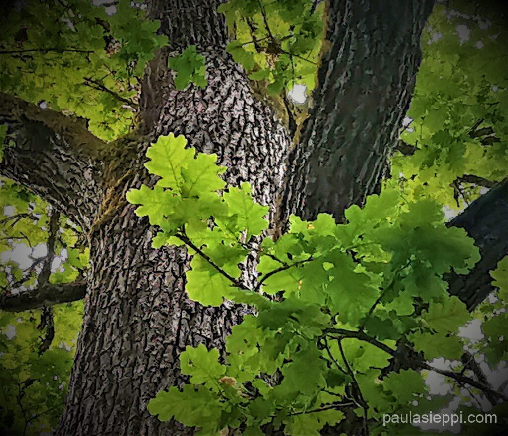 Kiersin huimaavan kauniin tammen kaksikin kertaa ihaillen sen oksia ja muotoa, ennen kuin tohdin mennä sen tyvelle koskettamaan runkoa. Paavolan tammi on hyvin elinvoimainen ja eloisa puu, lempeä jättiläinen, jolta varmasti riittää suotuisia ja kannustavia tuntemuksia kaikille kävijöille. Kun sen äärelle asettuu siitä ei tahtoisi lähteä pois, puu ikään kuin tuudittelee lehvästöllään ja valtaisan rungon kiemuroilla kävijän jonnekin vanhoihin satuihin missä maahiset, keijukaiset ja veikeät peikkolapset kisailevat. Eiköhän vain ollutkin yhdellä oksalla vilahdus jotakin sinistä ja säkenöivää…